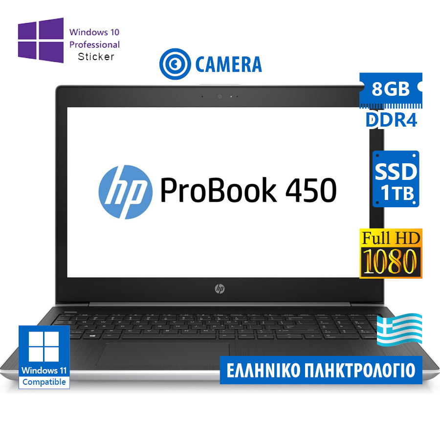 HP ProBook 450 G5 i5-8250U/15.6”FHD/8GB DDR4/1TB SSD/No ODD/Camera/10P Grade A Refurbished Laptop