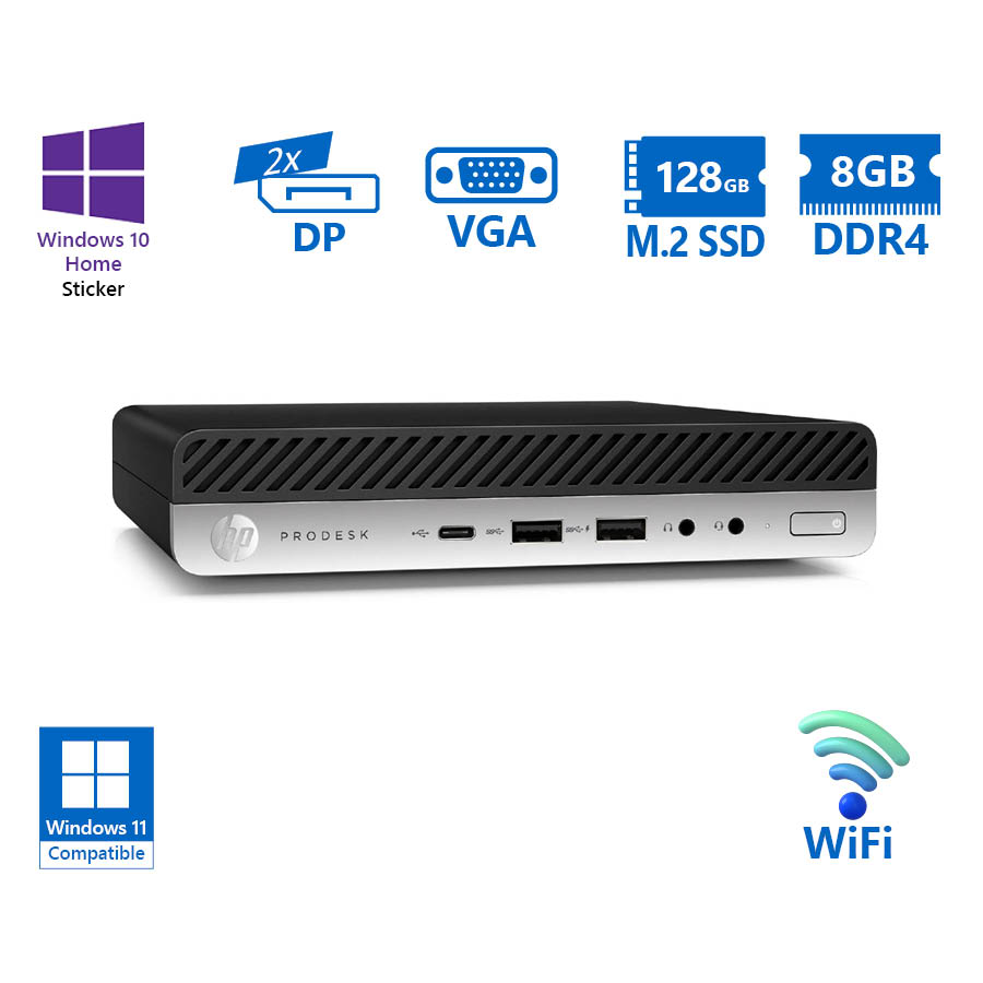 HP ProDesk 600G4 DM WiFi i3-8100T/8GB DDR4/128GB M.2 SSD/No ODD/10H Grade A Refurbished PC